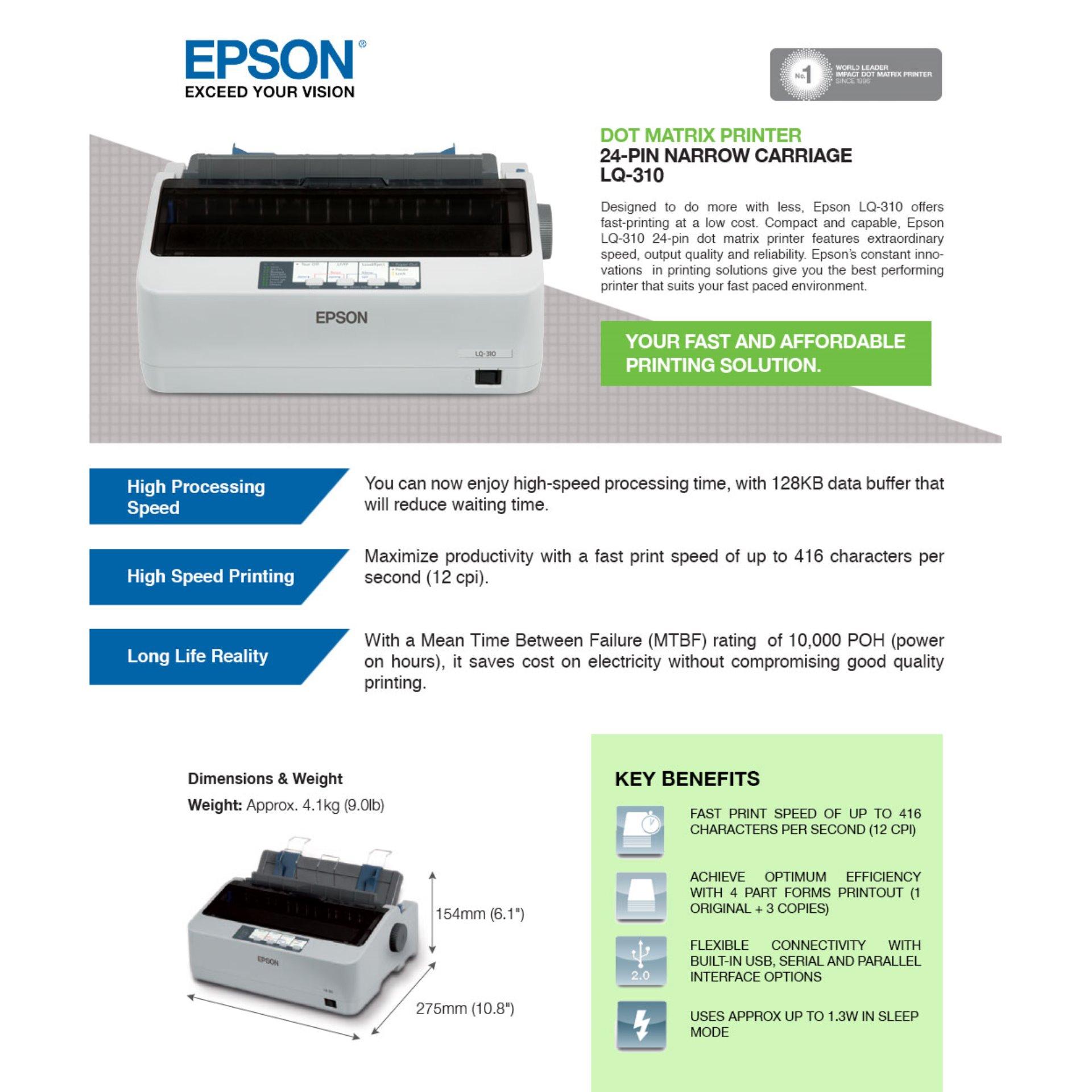 Epson Printer LQ-310 Dot Matrix Printer / LQ310 / LQ 310 / 310 / Replacement model of LQ-300 LQ300 / ( FREE USB Cable, Brought to you by GLOBAL IT MART PTE LTD ) (Delivery by Ninjavan)
