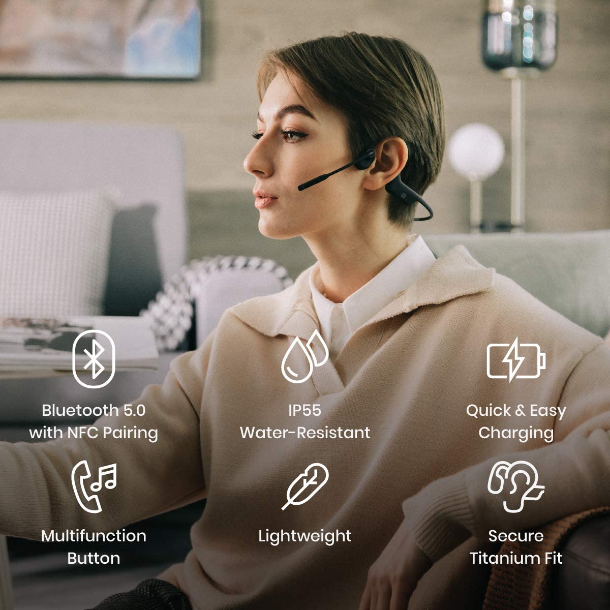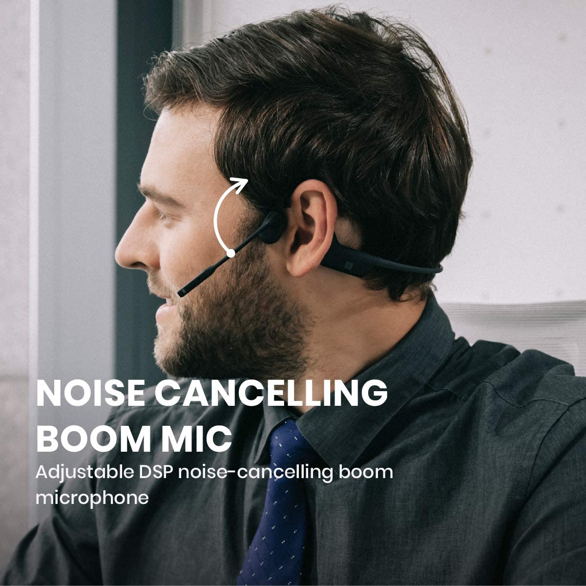 (NEXT DAY DELIVERY) Shokz OpenComm Wireless Stereo Bone Conduction Bluetooth Headset with Noise-Canceling Boom Microphone for Office Home Business Trucker Drivers Commercial Use