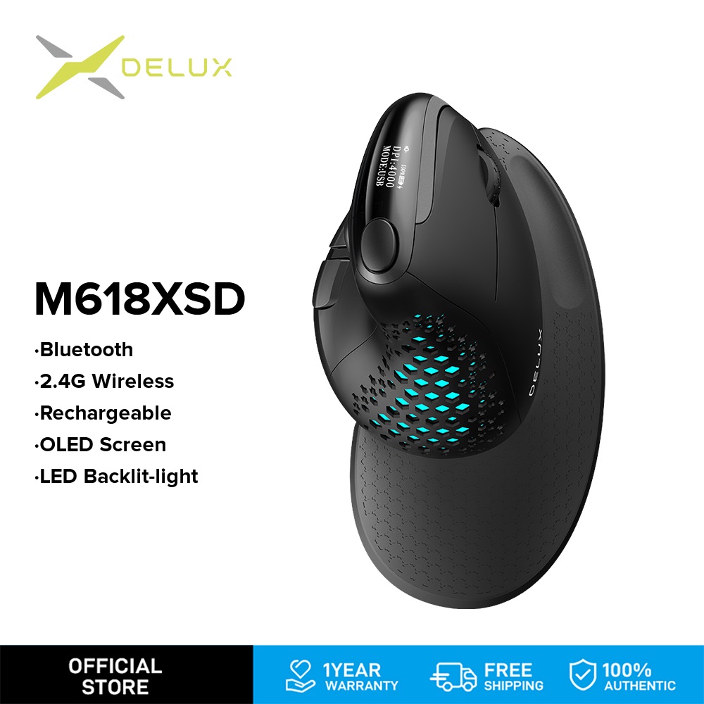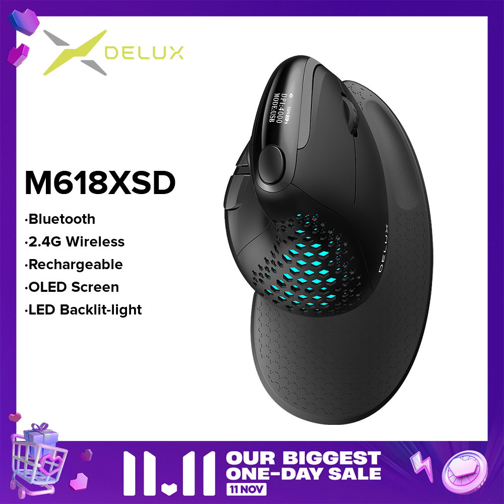 【11 11 Sales】Delux M618XSD Seeker Ergonomic Vertical Mouse with OLED Screen 4000DPI Rechargeable 1000mA Removable Back Cover For Computer