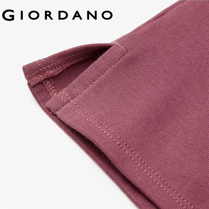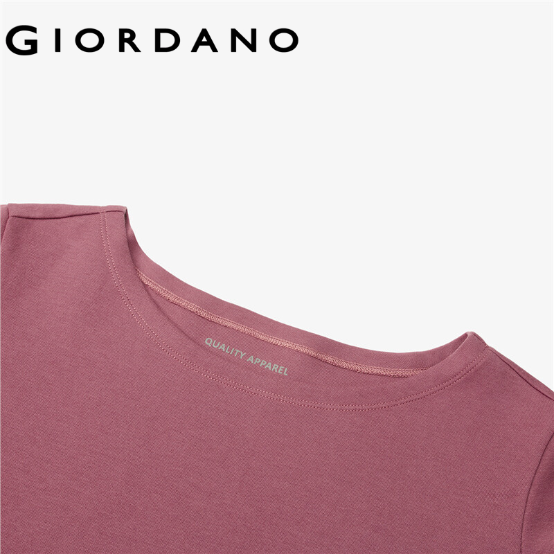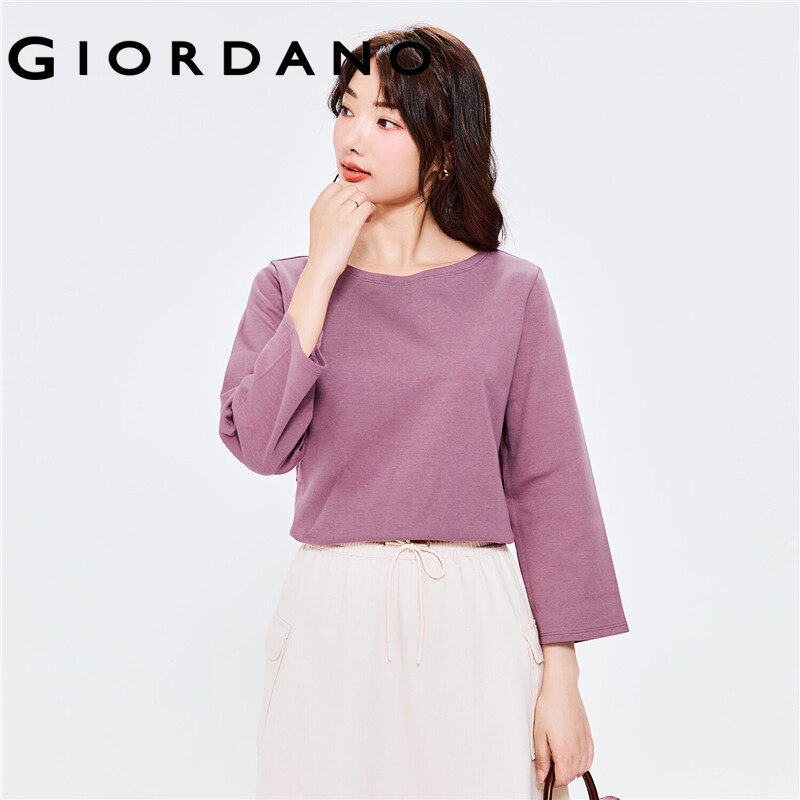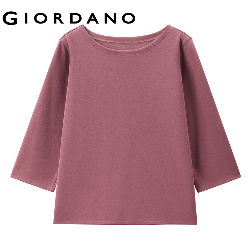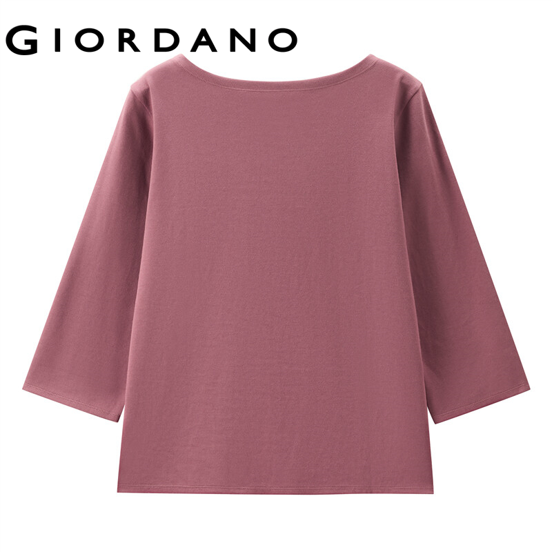 GIORDANO Women T-Shirts Interlock Coat Neck Casual T-Shirts 3/4 Sleeve Simple Basic Solid Color Stripe Design T-Shirts 05322629