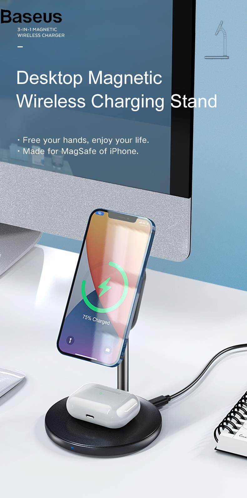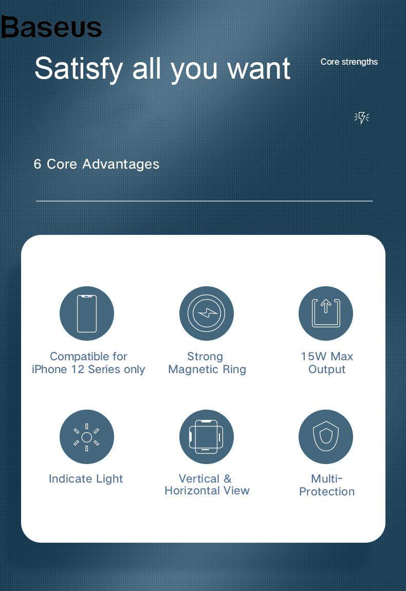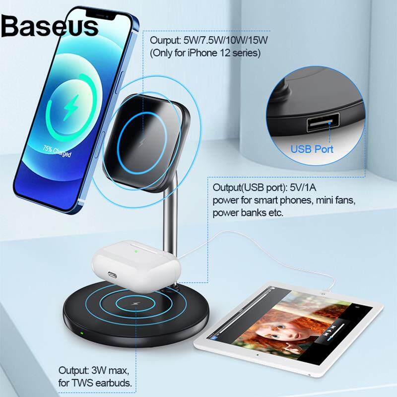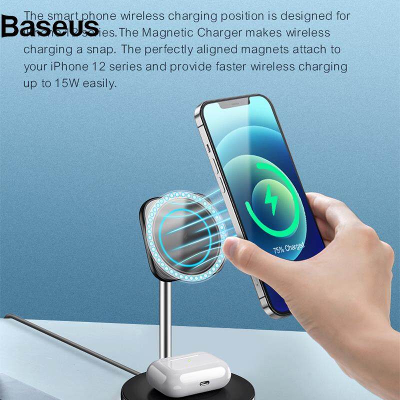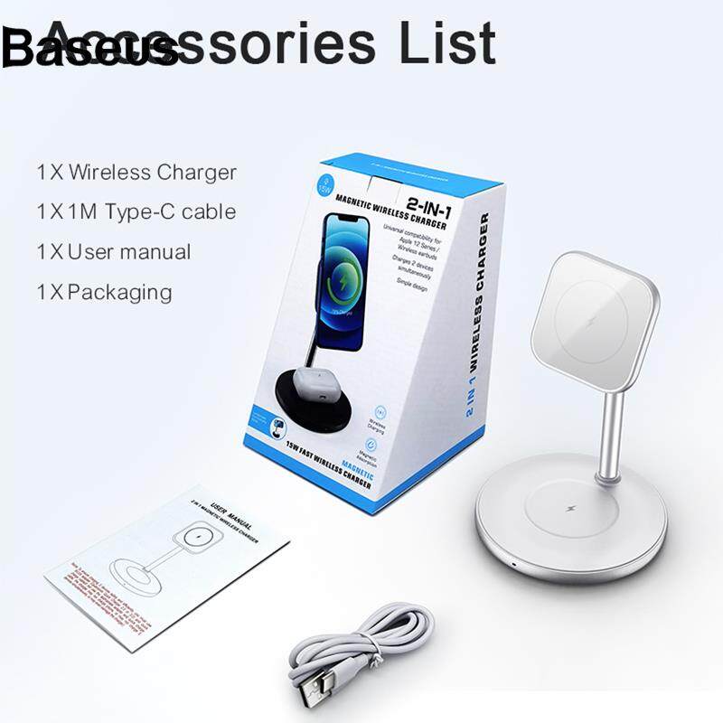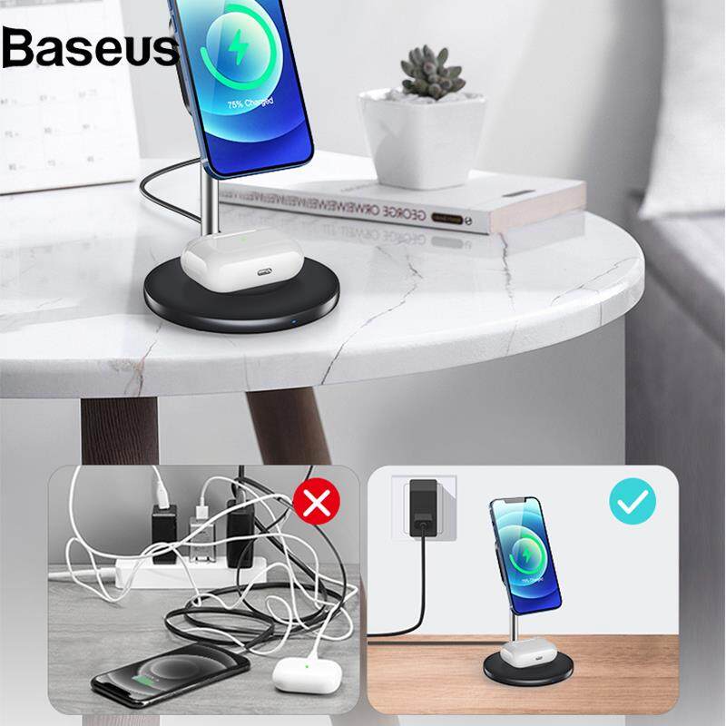 Baseus GY-Z13A 2-in-1 15W Magnetic Wireless Fast Charging Dock Phone Earphone Desktop Charger Stand for iPhone 12 Series/AirPods Pro