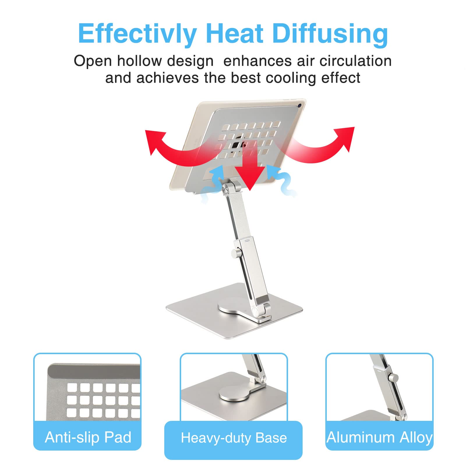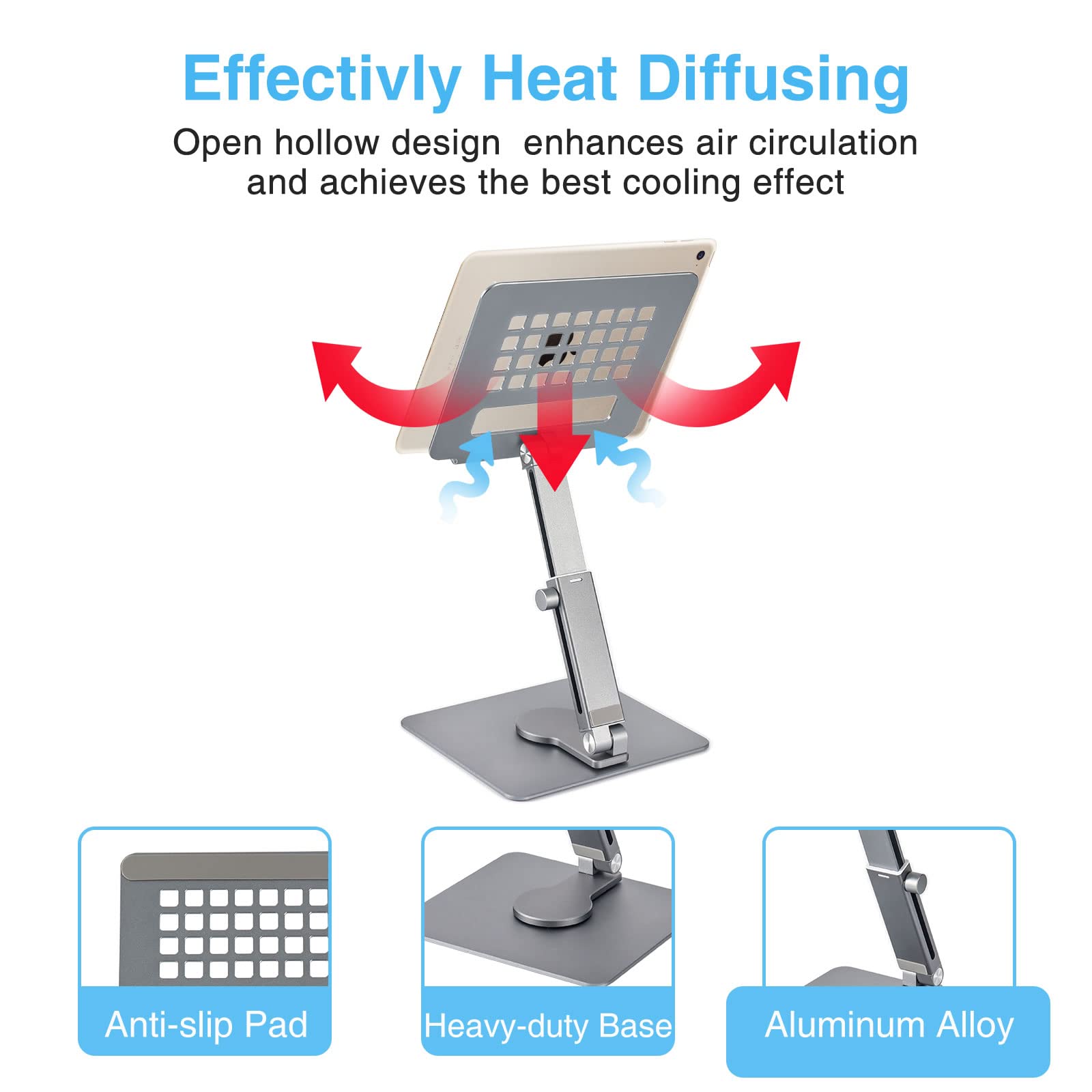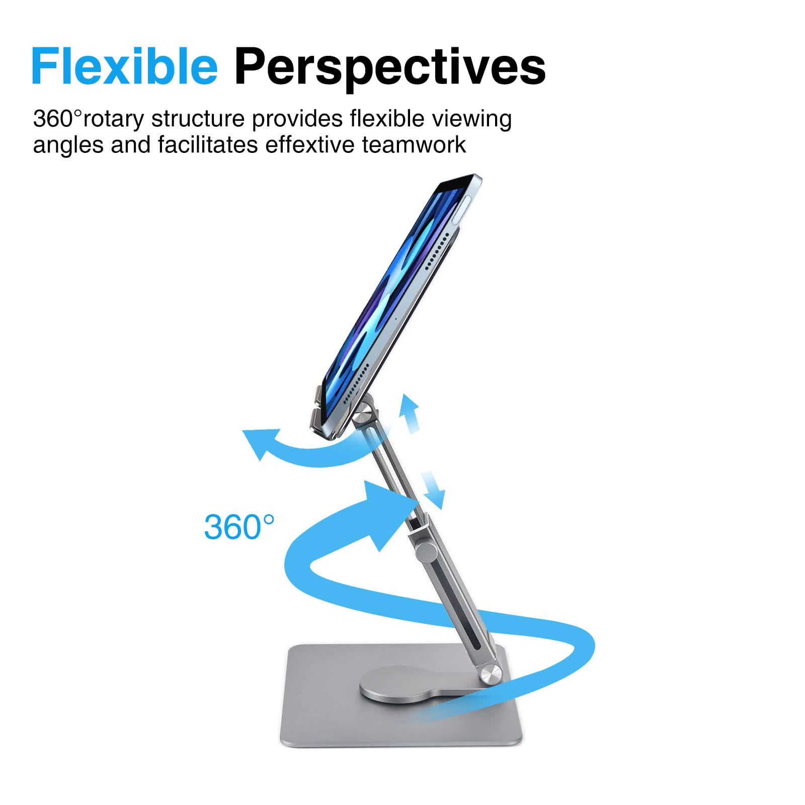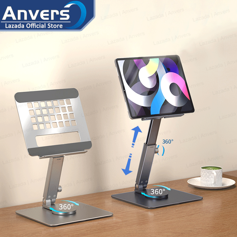 Anvers Adjustable Tablet Stand Holder, 360°Rotating Tablet Mount, Foldable Stand for Ipad,Heavy Duty Aluminum Desktop Stand for All Phone/Tablet 0-12.9 inch