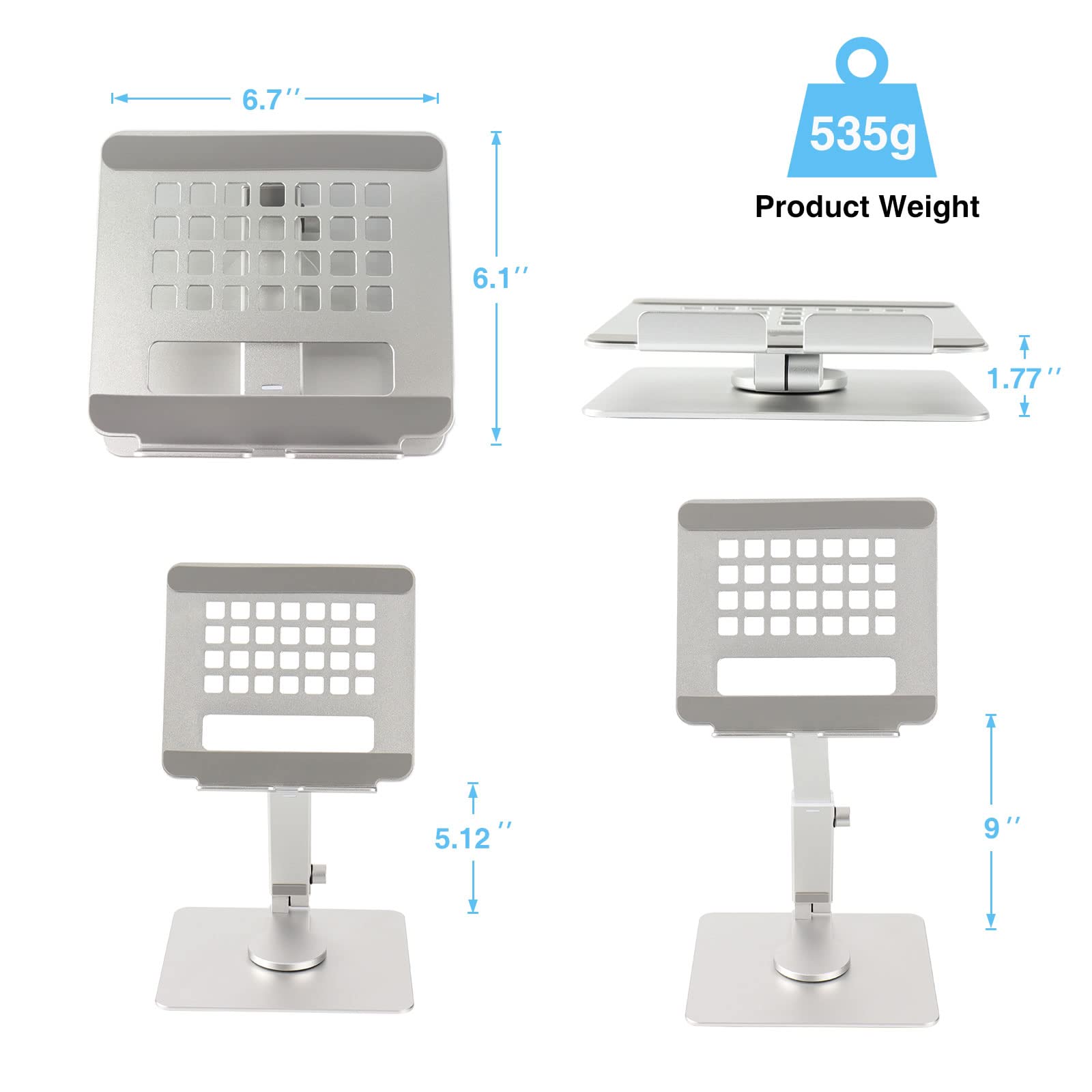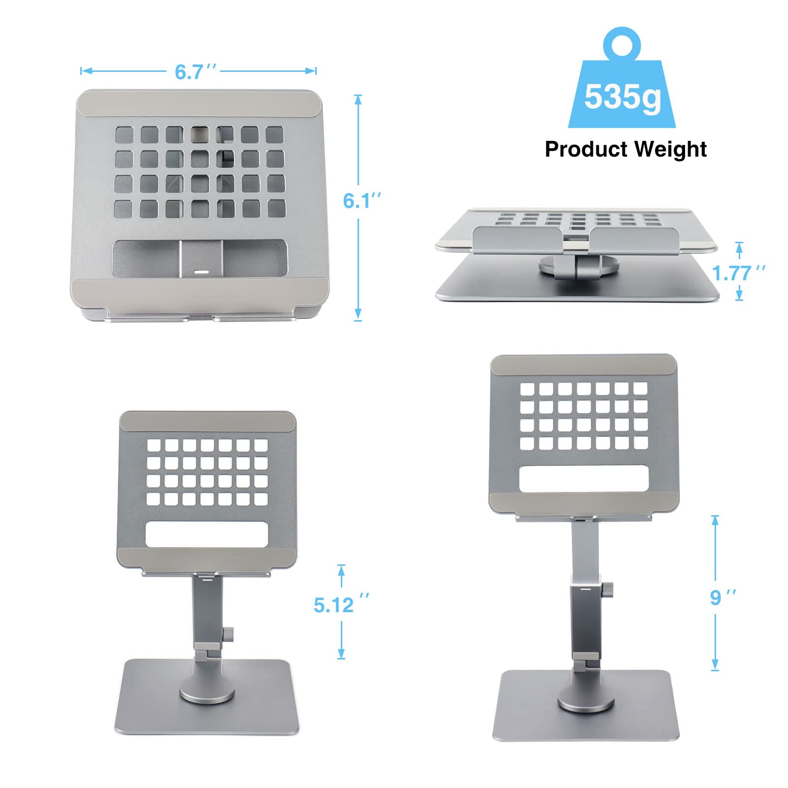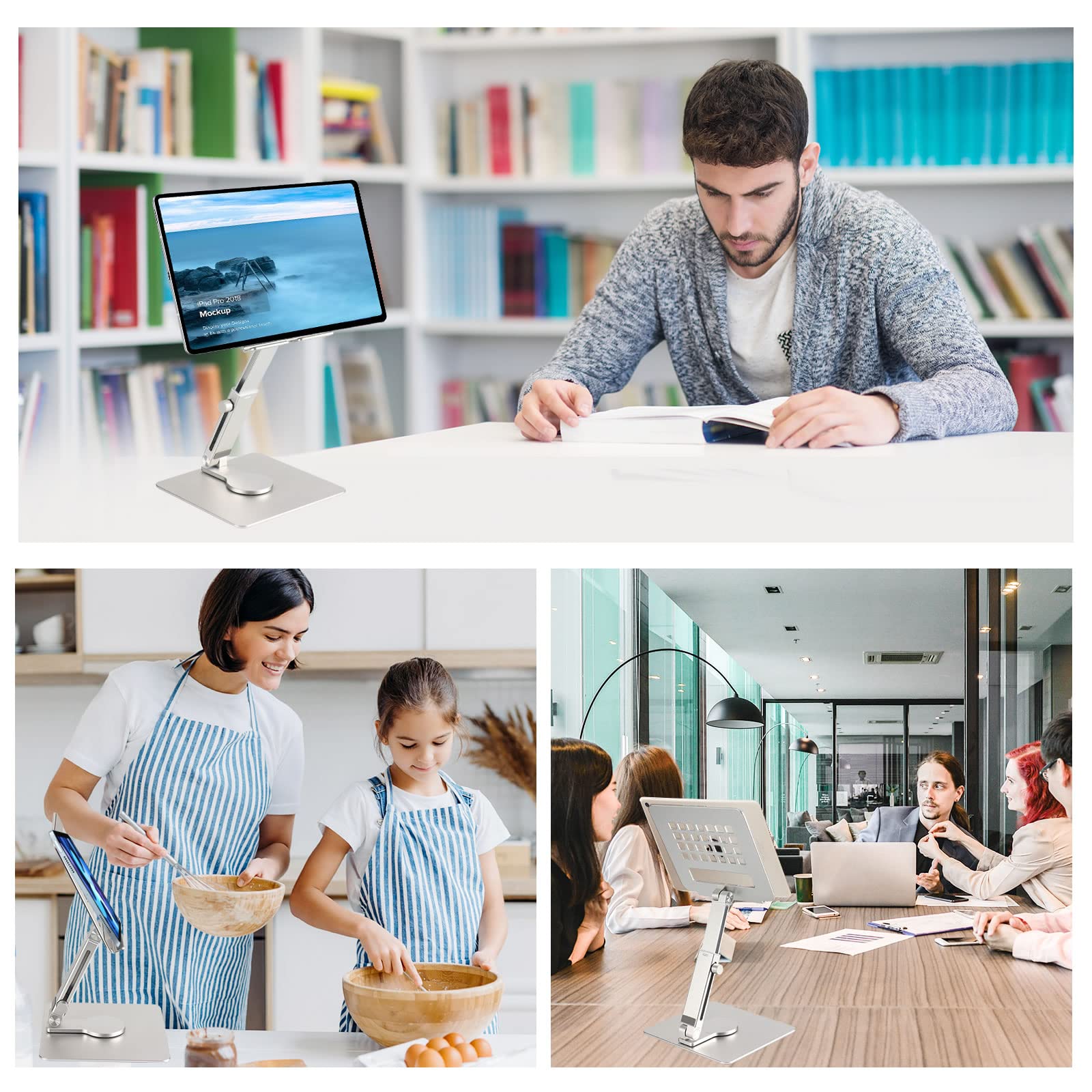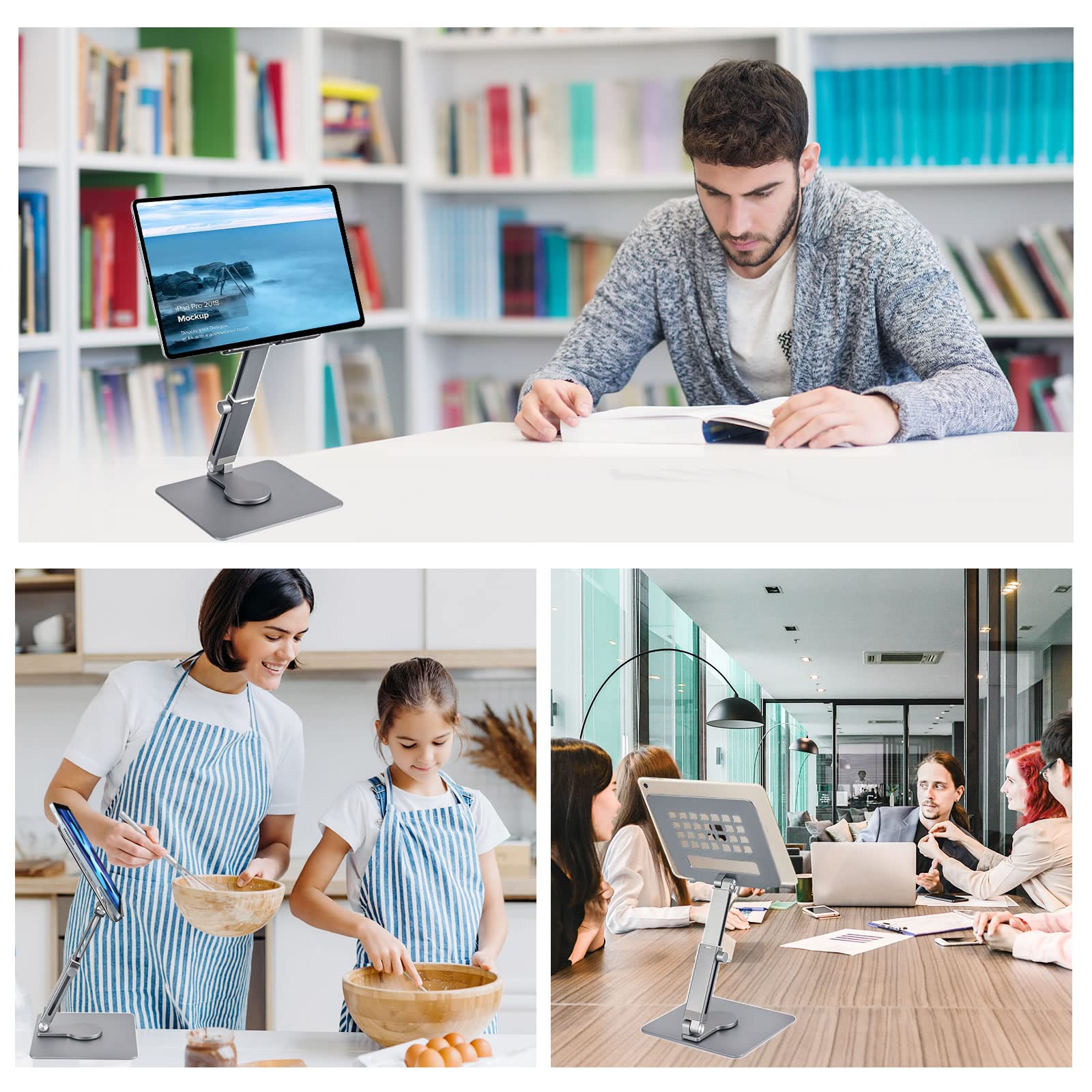 Anvers Adjustable Tablet Stand Holder, 360°Rotating Tablet Mount, Foldable Stand for Ipad,Heavy Duty Aluminum Desktop Stand for All Phone/Tablet 0-12.9 inch