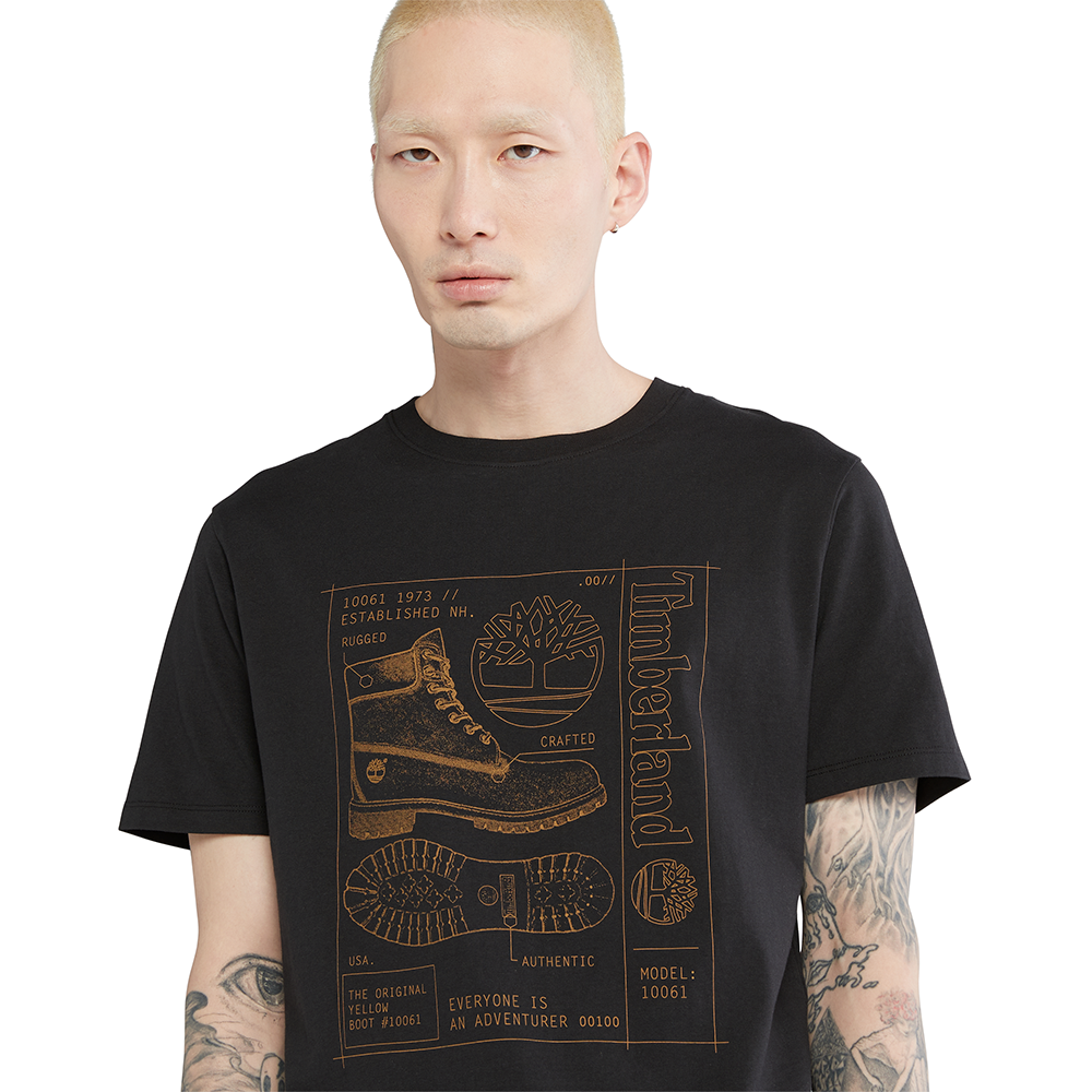 Timberland All Gender Blueprint Boot Front-Graphic T-Shirt Black