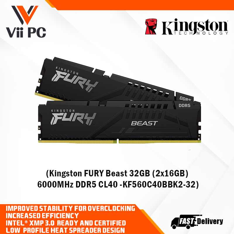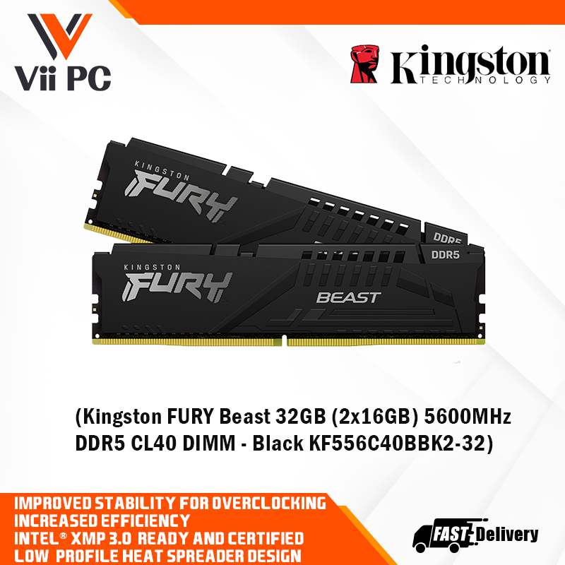 Kingston FURY Beast 32GB (2x16GB) 5600MHz/6000MHz DDR5 CL40 DIMM - Black