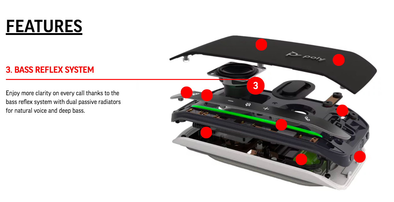 • Enjoy more clarity on every call thanks to the bass reflex system with dual passive radiators for natural voice and deep bass