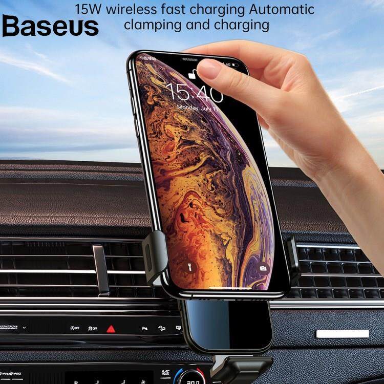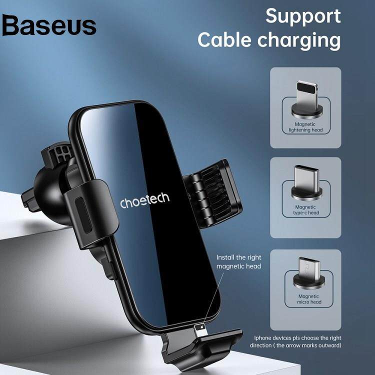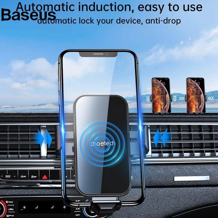 Baseus CHOETECH T201-F Car Air Vent Clip Automatic Lock Wireless Charger Phone Holder with Lightning / Type-C / Micro Magnetic Adapters