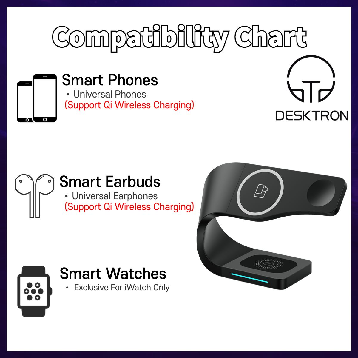 DESKTRON 4 IN 1 Magnetic Wireless Charger, 15W Qi Fast Charge Wireless Charging Dock Compatible For iPHONE 14 13 12 AirPods 3 iWatch 8