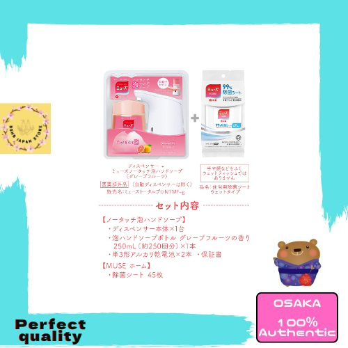 Muse Non-Touch Foam Hand Soap, Automatic Dispenser + Refill 8.5 fl oz (250 ml), Grapefruit Scent + Alcohol Disinfecting Muse Home 99% Disinfecting Sheets, 45 Sheets, 100% Authentic