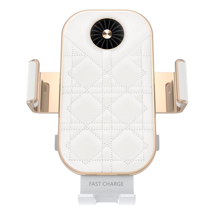 Baseus C38 Grid Texture PU Leather Coated Mobile Phone Holder Wireless Charger with Cooling Fan for Samsung Galaxy Z Flip3 / Flip4 / iPhone