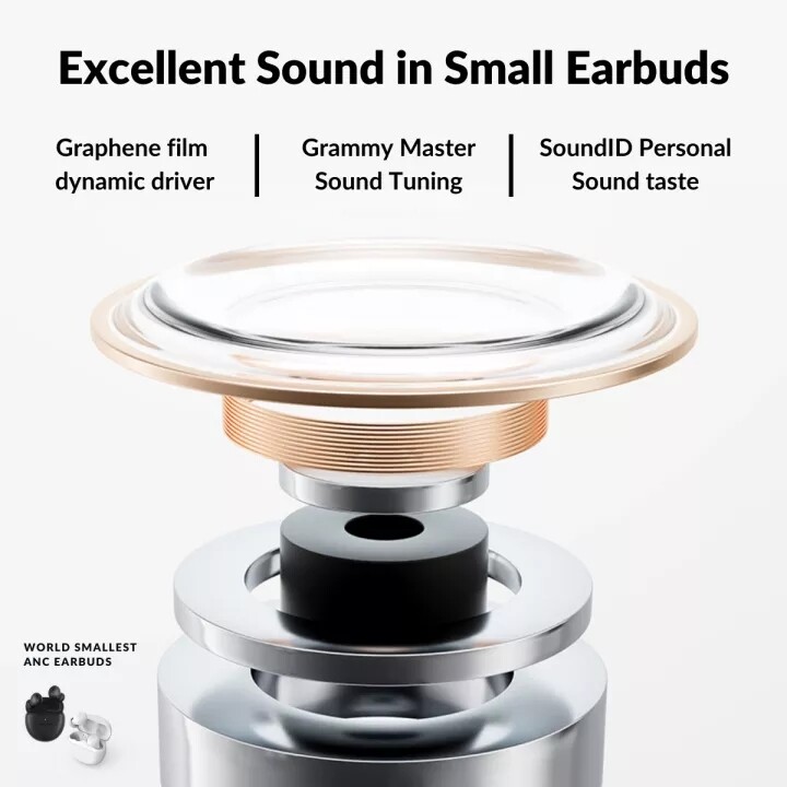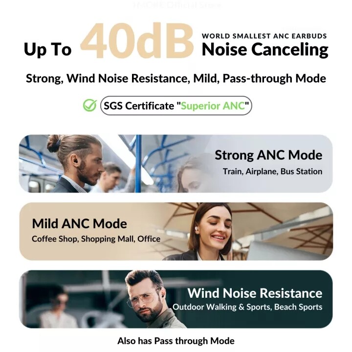 We've integrated 1MORE's proprietary QuietMax active noise cancellation technology in the tiny body of the ComfoBuds Mini to provide you with true quiet. Reaching up to the maximum Noise-cancelling depth of 40dB, these earbuds can mute the world around you, so you can better hear every detail of your music and feel the emotion and stories from every track.