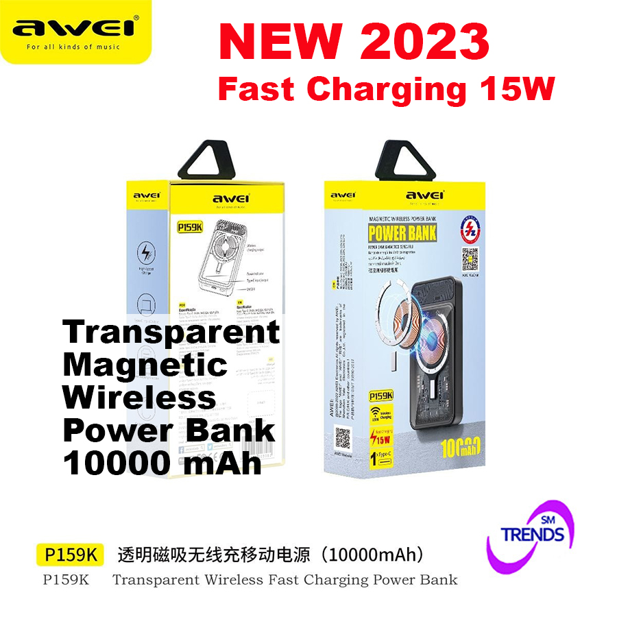 Awei P159K 15W Light Magnetic Wireless Power Bank 20W PD 10000mAh Type-C Fast Charge Portable Power Bank for Xiaomi Samsung