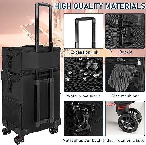 • 【Professional Rolling Makeup Case】The 2-in-1 Makeup Travel Case is designed for professional makeup artists, nail technicians and hair barbers/stylists.