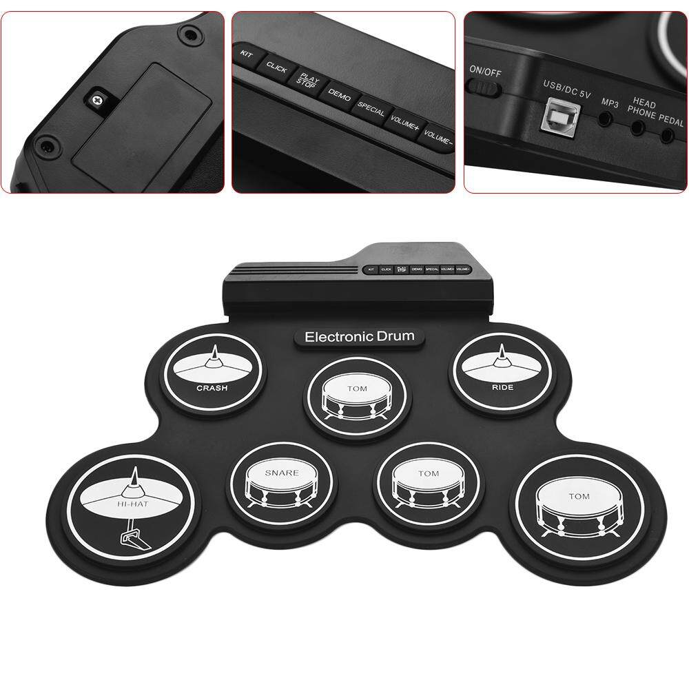 [Hot sale] Compact Size USB Roll-Up Silicon Drum Set Digital Electronic Drum Kit 7 Drum Pads with Drumsticks Foot Pedals