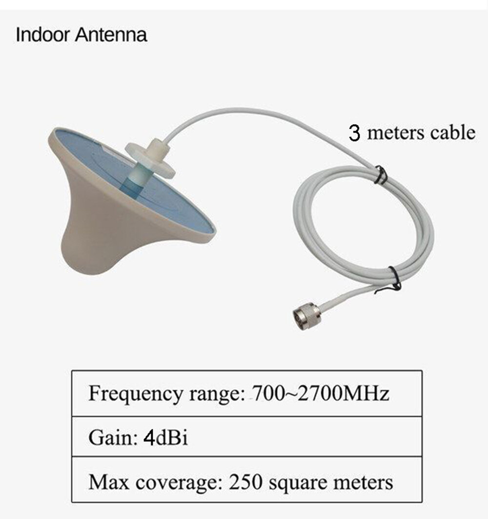 900 1800 2100 2600mhz Four band Mobile Amplifier repeater GSM 4G repeater 2G 3G 4G repeater LTE DCS cellular Signal Booster 2600 GSM 900mhz Frequency Range: Uplink:890-915mhz Downlink:935-960mhz DCS 1800mhz Frequency Range : Uplink:1710-1785mhz Downlink:1805-1880mhz WCDMA 2100mhz Frequency Range: Uplink:1920-1980mhz Downlink:2110-2170mhz LTE 2600mhz Frequency Range : Uplink: 2500-2570MHz Downlink: 2620-2690 MHz How to work: 1.Outdoor antenna (Yagi antenna) receive the signal from base station. 2.Then, sends the signal to repeater through long cable 3.The repeater receives the signal and improves it. 4.After that, signal into the indoor antenna(panel/ceiling/whip antenna),finally your mobile phone signal will improve.