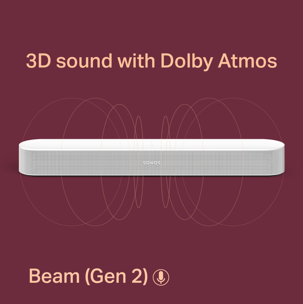 5.1 Sonos Beam (Gen 2) Soundbar For TV With Dolby Atmos Set with One SL and Sub - Wireless Home Theater System
